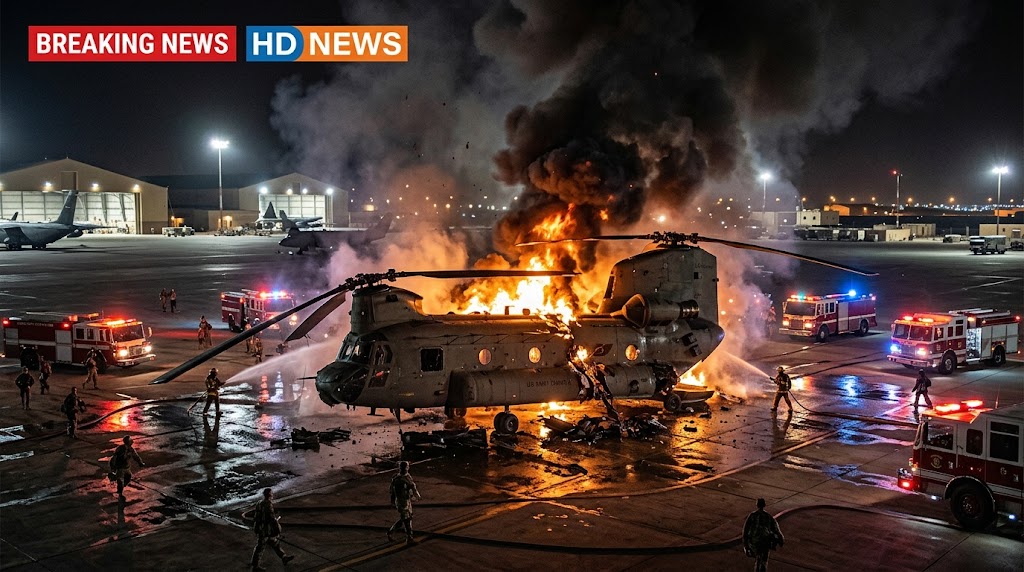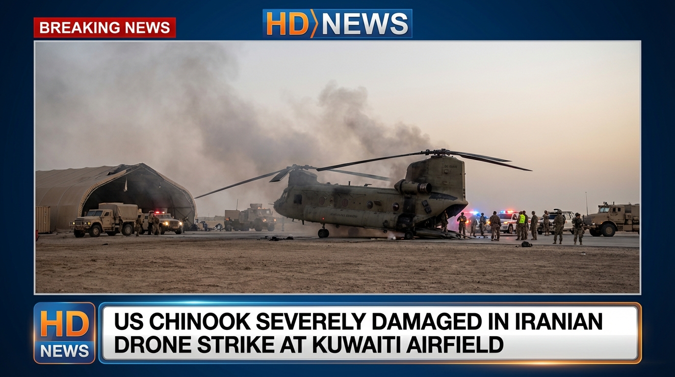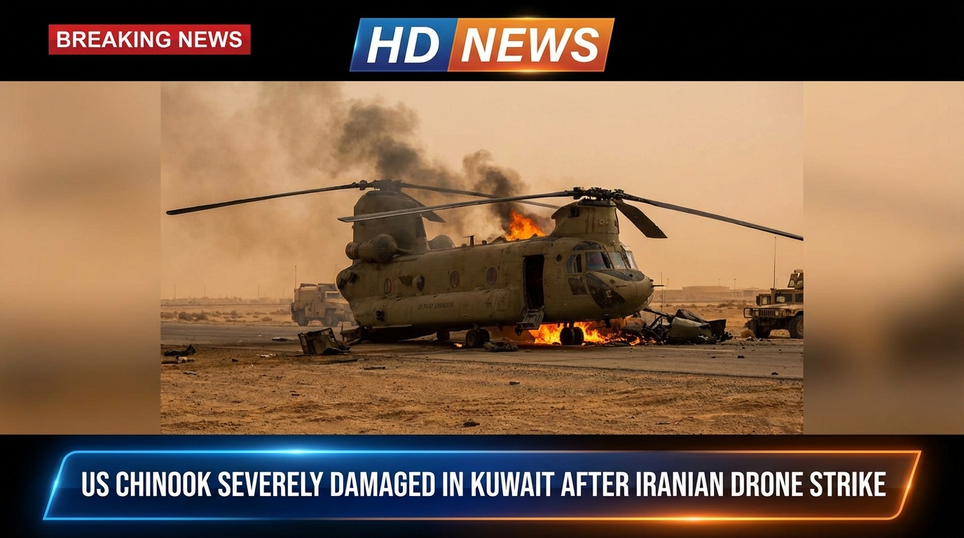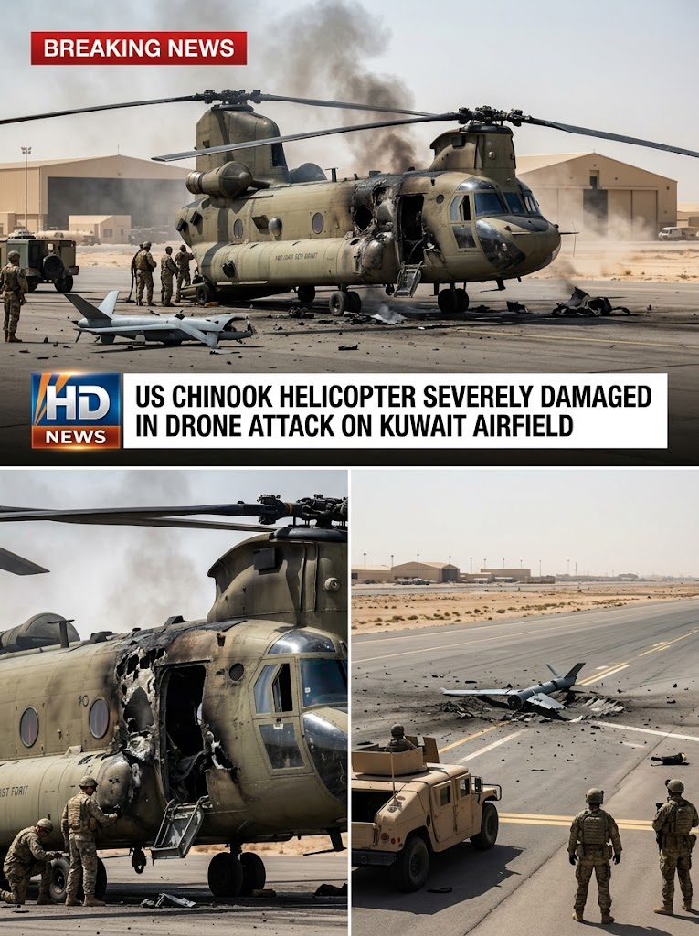 Reports confirm that a U.S. CH-47 Chinook heavy-lift helicopter was severely damaged during an Iranian drone attack targeting a military airfield in Kuwait, marking another escalation in the expanding regional conflict. However, the details surrounding the incident remain partially contested and should be understood carefully.