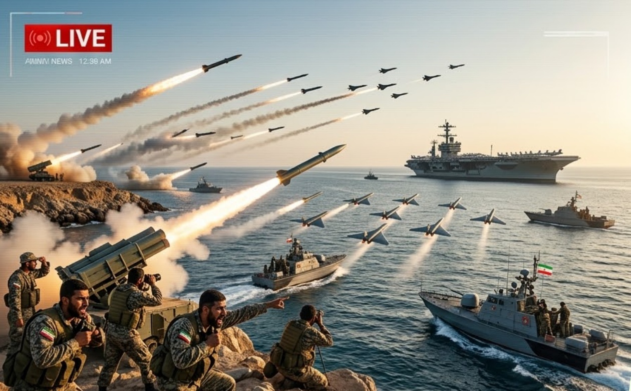 In one of the most dramatic claims of the ongoing US-Iran War, Iran has announced that its forces successfully struck a major U.S. supercarrier operating in West Asia. According to IRGC commanders, multiple waves of ballistic missiles and suicide drones targeted the American warship in the Arabian Sea, scoring direct hits that caused significant damage and casualties. Iranian state television aired footage showing explosions lighting up the night sky near a mᴀssive carrier deck, declaring it a “historic victory” against American naval power in the region.