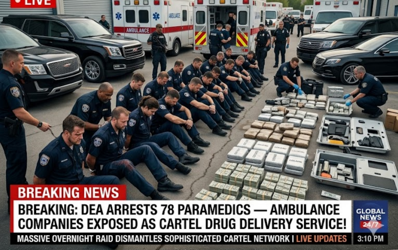 In a shocking nationwide crackdown, the DEA has arrested 78 paramedics and emergency medical personnel across multiple states after uncovering a sophisticated network that used ambulance companies as fronts for large-scale cartel drug distribution.