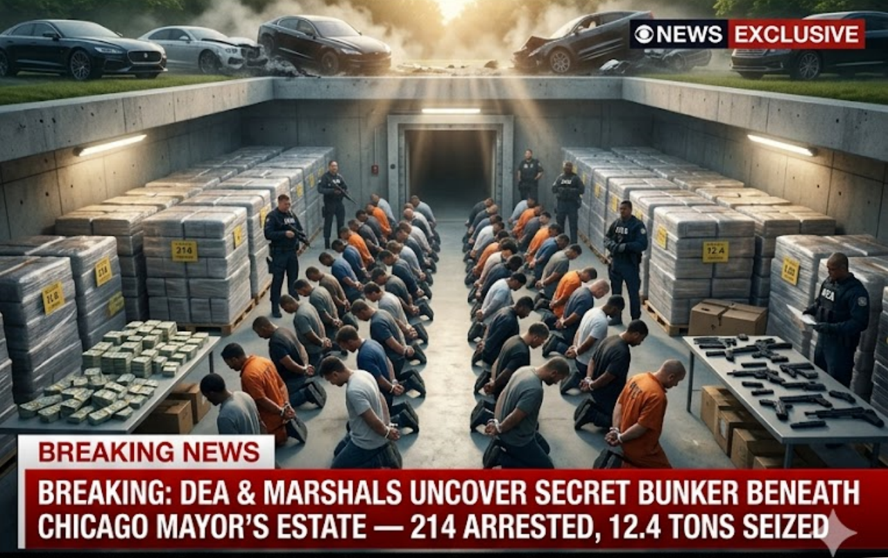 In a jaw-dropping raid that has sent shockwaves through Chicago’s political establishment, DEA agents and U.S. Marshals have uncovered a mᴀssive secret bunker hidden beneath a luxury estate linked to the Chicago Mayor’s inner circle. The high-stakes operation resulted in 214 arrests and the seizure of a staggering 12.4 tons of ᴅᴇᴀᴅly narcotics, including fentanyl, cocaine, and heroin.