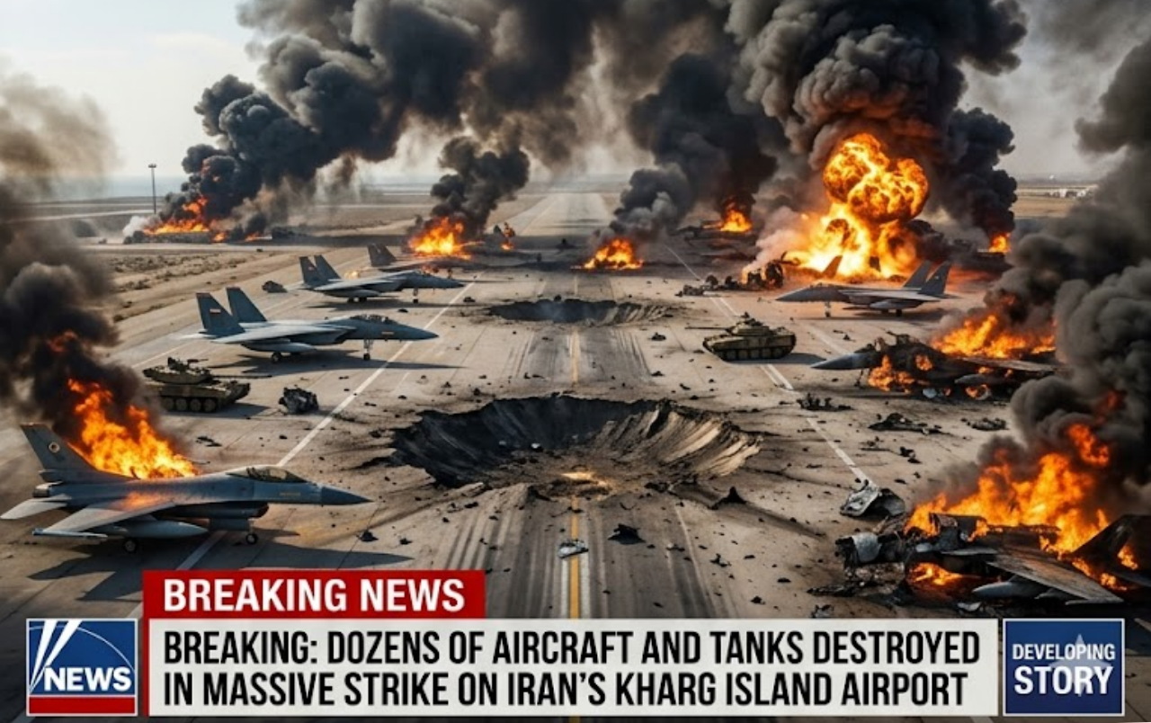 In a powerful and highly successful nighttime operation, US forces have launched a devastating strike on Iran’s strategic Kharg Island Airport, destroying dozens of military aircraft and tanks in one of the most significant logistical blows of the war.