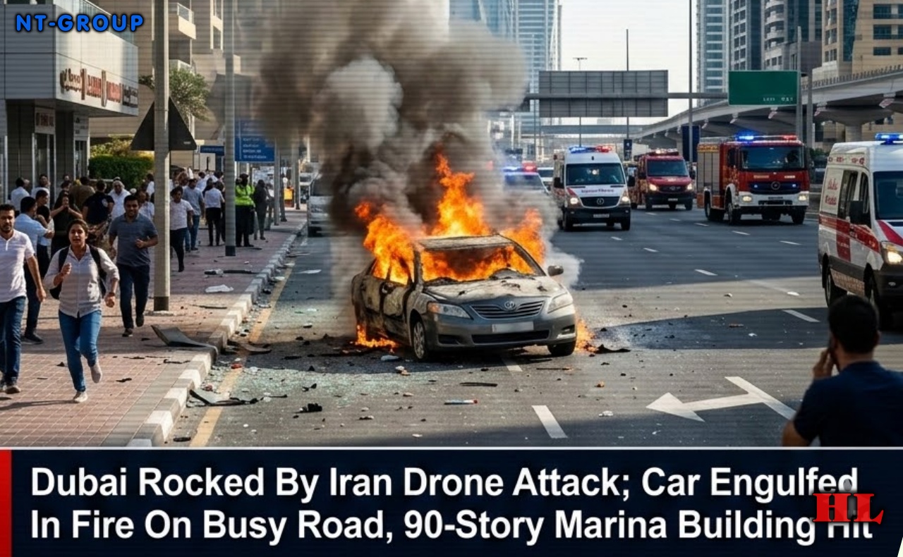Dubai was jolted out of its image of safety and luxury overnight as an Iranian drone strike rocked the city, setting a car ablaze on a busy arterial road and slamming into a 90‑story residential tower in Dubai Marina, officials and witnesses say.