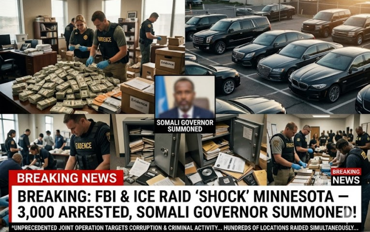 In the largest single-day law enforcement operation in Minnesota history, FBI and ICE agents launched a sweeping raid across the state, arresting over 3,000 individuals connected to a vast criminal network involving drug trafficking, money laundering, human smuggling, and public corruption. The coordinated strikes targeted multiple locations in Minneapolis and surrounding areas, collapsing what authorities describe as one of the most extensive Somali-linked criminal enterprises operating inside the United States.
