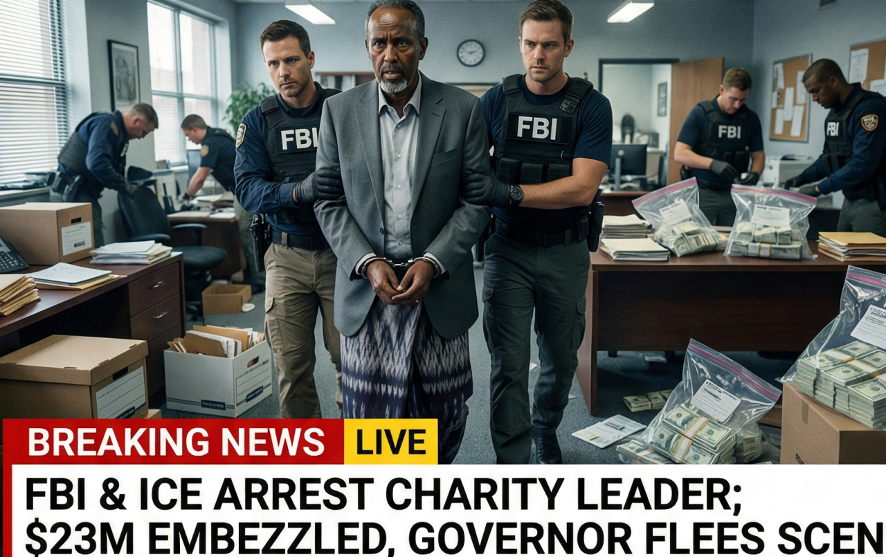 In a explosive raid that has rocked Minnesota’s political and immigrant communities, FBI and ICE agents have arrested a prominent Somali-American charity leader accused of embezzling $23 million from funds meant for humanitarian aid. The suspect, who ran a large nonprofit organization, allegedly diverted millions of dollars into personal accounts, luxury purchases, and possibly criminal enterprises.