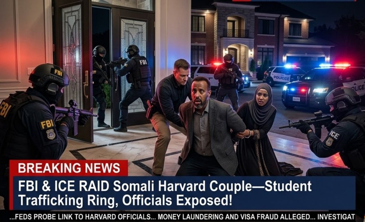 Cambridge, Mᴀssachusetts – Federal agents from the FBI and ICE shattered the ivy-covered image of elite academia in a dramatic pre-dawn raid on March 14, 2026, targeting a Somali couple enrolled at Harvard University and uncovering what investigators call a sophisticated international student trafficking network.