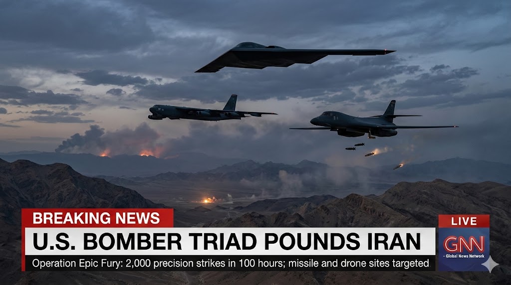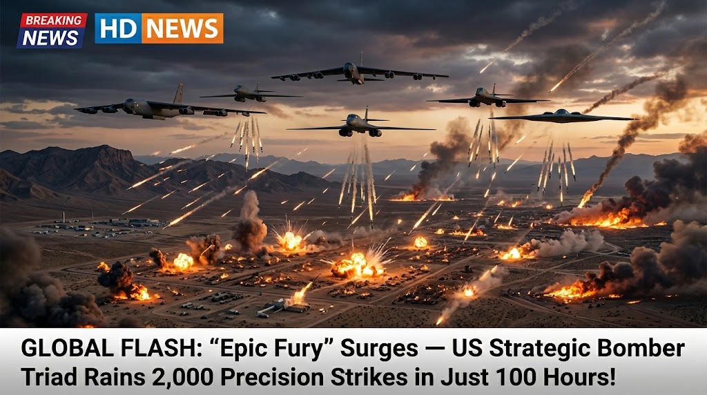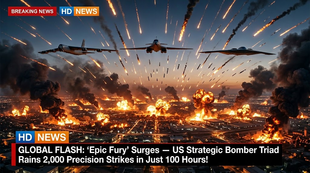 GLOBAL FLASH: “Epic Fury” Surges — US Strategic Bomber Triad Rains 2,000 Precision Strikes in Just 100 Hours!