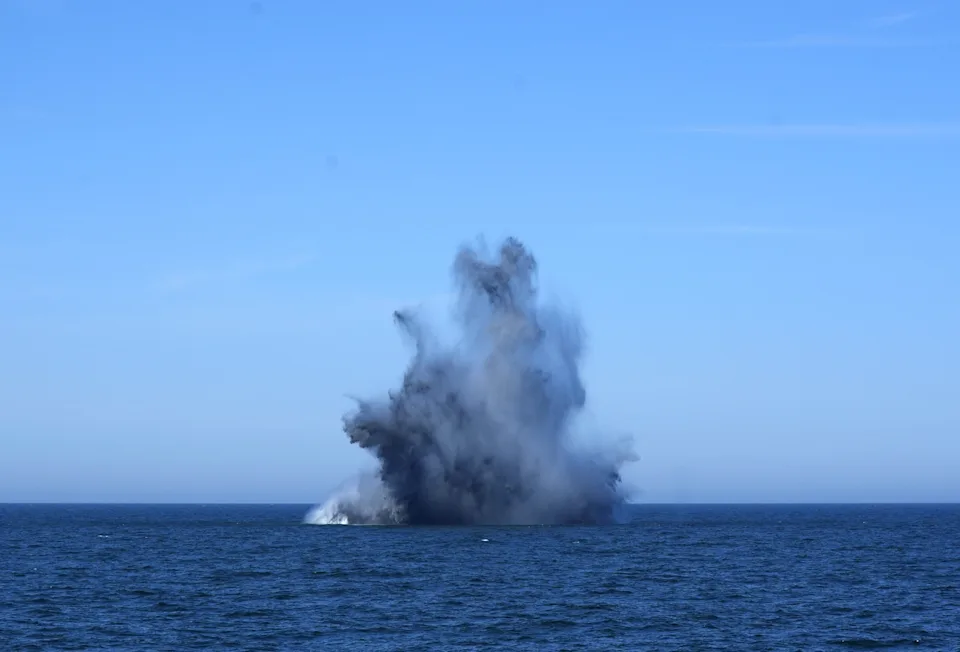 Moments later, a controlled detonation sends a burst of energy through the water—neutralizing the threat.