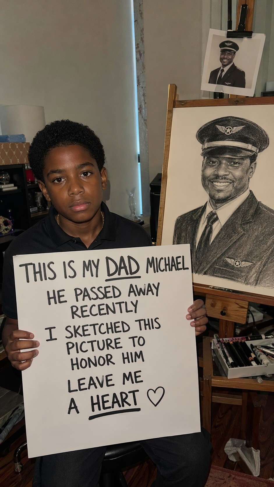 “I drew you just like this, Dad… so I don’t forget your smile.”