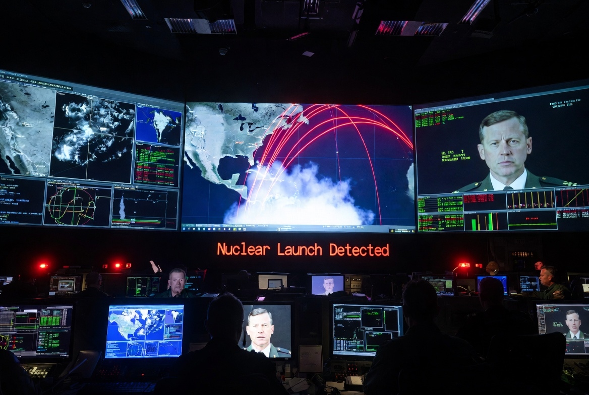 Nuclear alarm sounds at the underground command centers (Cheyenne Mountain, Offutt AFB).