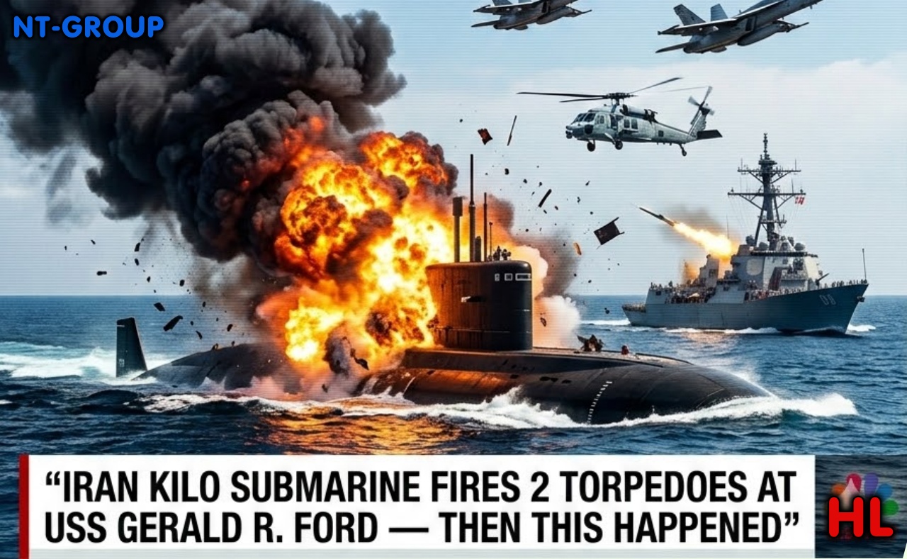 The most advanced US aircraft carrier afloat, USS Gerald R. Ford, has survived a ᴅᴇᴀᴅly underwater ambush after an Iranian Kilo‑class submarine fired two heavyweight torpedoes at the supercarrier in the north Arabian Sea, defence sources say.