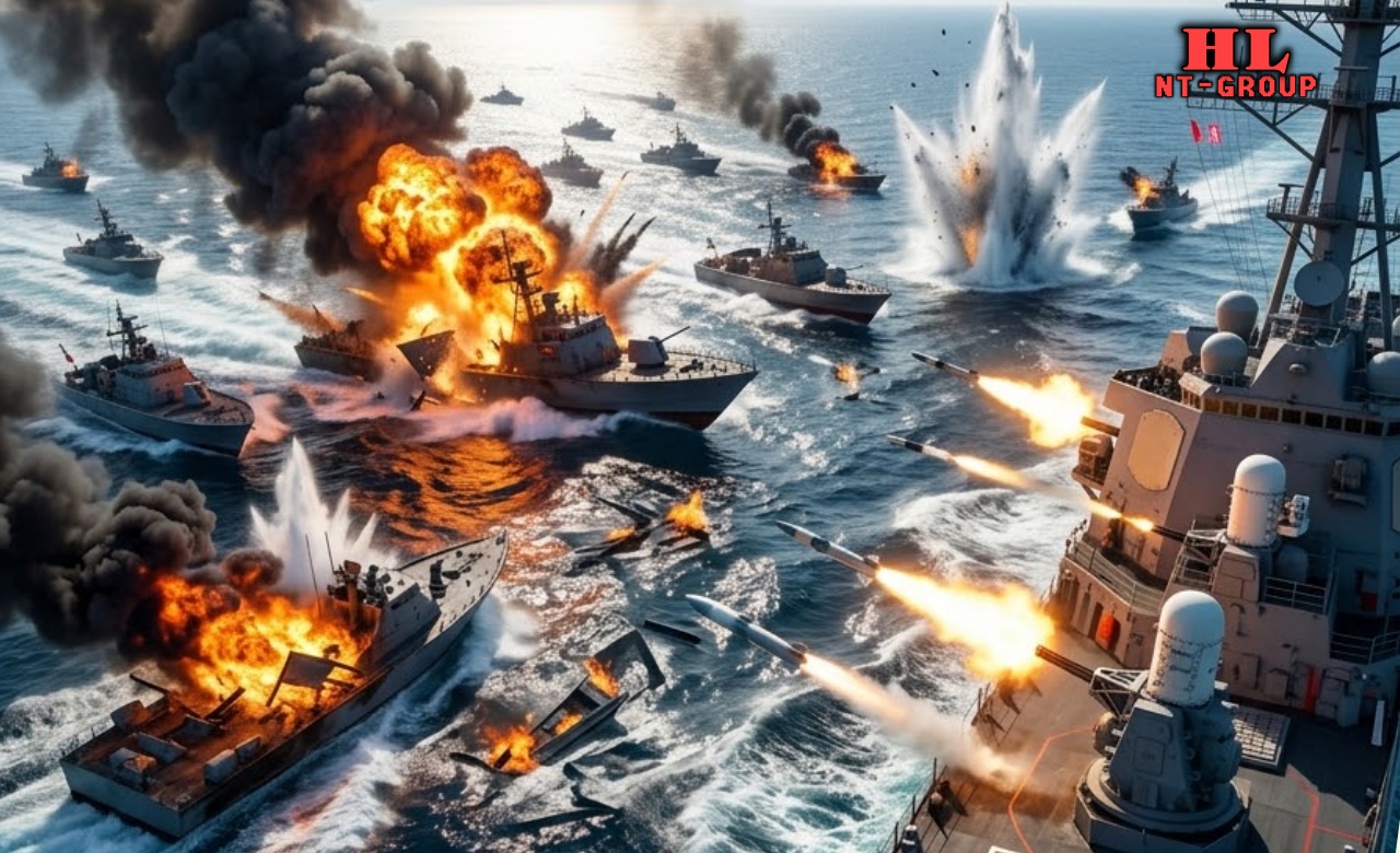 The U.S. destroyer, supported by helicopter gunships and F/A-18 Super Hornets from a nearby carrier strike group, unleashed devastating firepower. Within minutes, the sky filled with Hellfire missiles, rockets, and heavy cannon fire. Iranian boats were torn apart in spectacular explosions, with many sinking almost instantly. Pentagon sources report that over 120 of the 150 vessels were destroyed or disabled in one of the most one-sided naval engagements of the conflict so far.