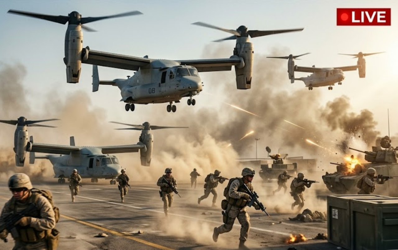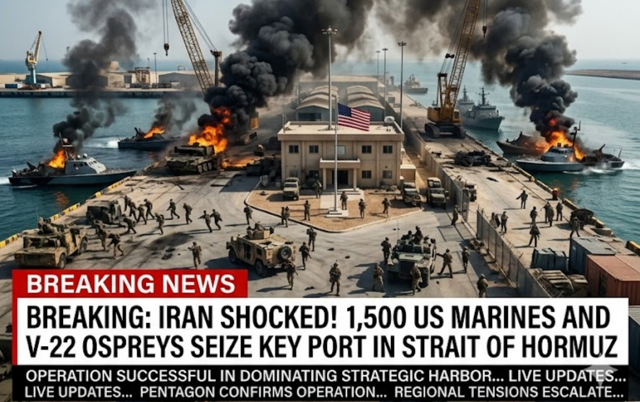 In a lightning-fast and daring amphibious ᴀssault, 1,500 US Marines supported by squadrons of V-22 Osprey tiltrotor aircraft have seized a critical Iranian port directly on the Strait of Hormuz. The high-speed operation caught Iranian forces completely off guard, resulting in the rapid capture of the strategic facility with minimal resistance.