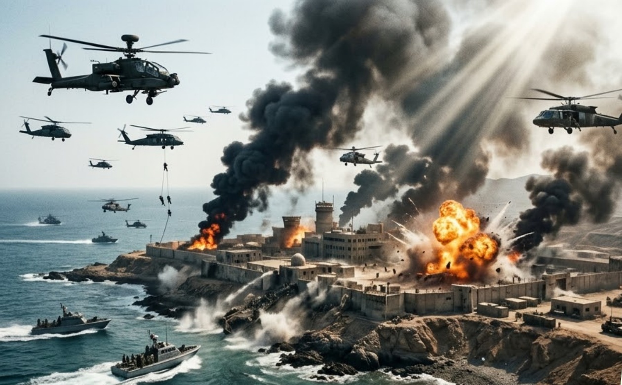 Under cover of darkness, waves of U.S. Army Rangers, Navy SEALs, Delta Force operators, Green Berets, and Marine Raider units struck with overwhelming force. Helicopters thundered overhead as troops fast-roped directly into the heavily fortified complex. Fierce close-quarters combat erupted as American warriors systematically cleared buildings, command bunkers, and communication hubs. Within hours, the entire IRGC nerve center — responsible for coordinating naval attacks, mine-laying operations, and threats to international shipping in the Strait of Hormuz — was captured and destroyed.
