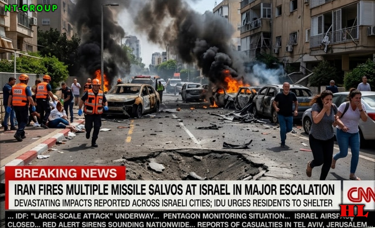 The Islamic Revolutionary Guard Corps launched dozens of ballistic missiles in rapid waves, including advanced Fattah and Kheibar variants. Israeli air defenses intercepted many, but several warheads got through, slamming into areas near Tel Aviv, Haifa, and the central region. Dramatic footage shows cars completely burned and overturned on highways, streets littered with shattered glᴀss and twisted metal, and large fires raging in residential and commercial zones.