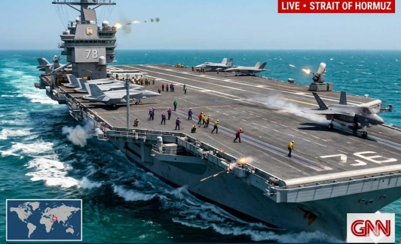 Despite Iran’s bold attempt, the U.S. carrier group remains fully operational and continues to enforce control over the Strait of Hormuz.