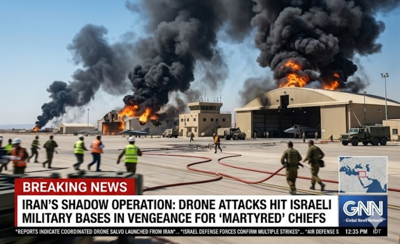 Tel Aviv / Southern Israel – Iran has launched a stealthy and calculated “shadow operation,” unleashing swarms of advanced drones against multiple Israeli military bases in a direct act of vengeance for the recent killing of senior IRGC commanders.