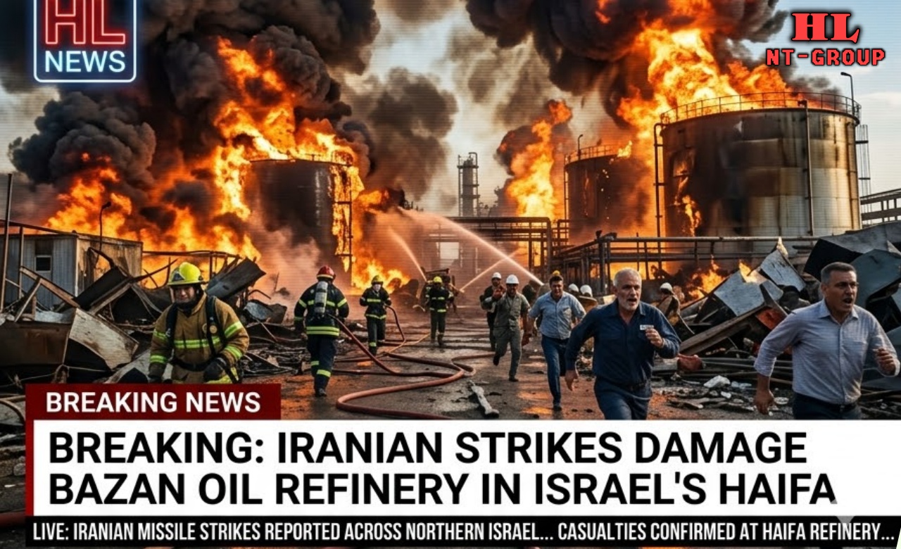 In a powerful and symbolic blow, Iranian forces have successfully struck Israel’s largest oil refinery in Haifa, causing significant damage to the strategic Bazan facility. Thick black smoke rose high over Haifa Bay as fires raged across multiple storage tanks and processing units following a fresh barrage of ballistic missiles. Israeli officials confirmed that emergency teams are struggling to contain the blaze, with visible structural damage reported at the heart of the country’s energy infrastructure.