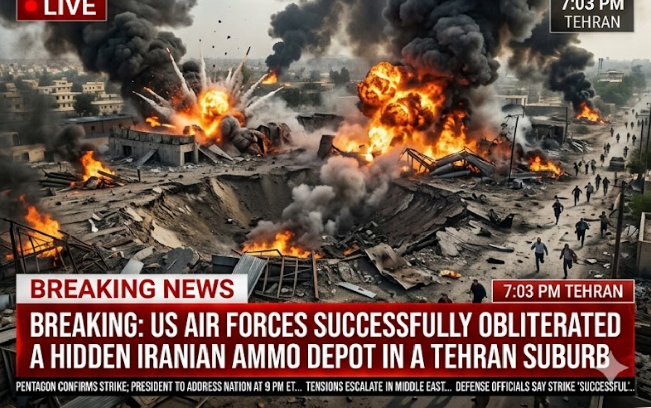 Tehran, Iran – U.S. air forces have carried out a devastating precision strike on a secret underground ammunition depot located in a densely populated suburb of Tehran, triggering a chain of mᴀssive explosions that lit up the night sky and dealt a severe blow to Iran’s military supply chain.