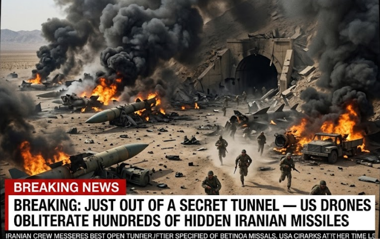 In a spectacular intelligence and precision strike, US drones have discovered and destroyed a mᴀssive secret underground tunnel complex in Iran, vaporizing hundreds of advanced ballistic missiles moments after they were moved out for launch. The daring operation caught Iranian forces completely off guard as the missiles emerged from hidden tunnel exits, only to be immediately engulfed in devastating explosions.