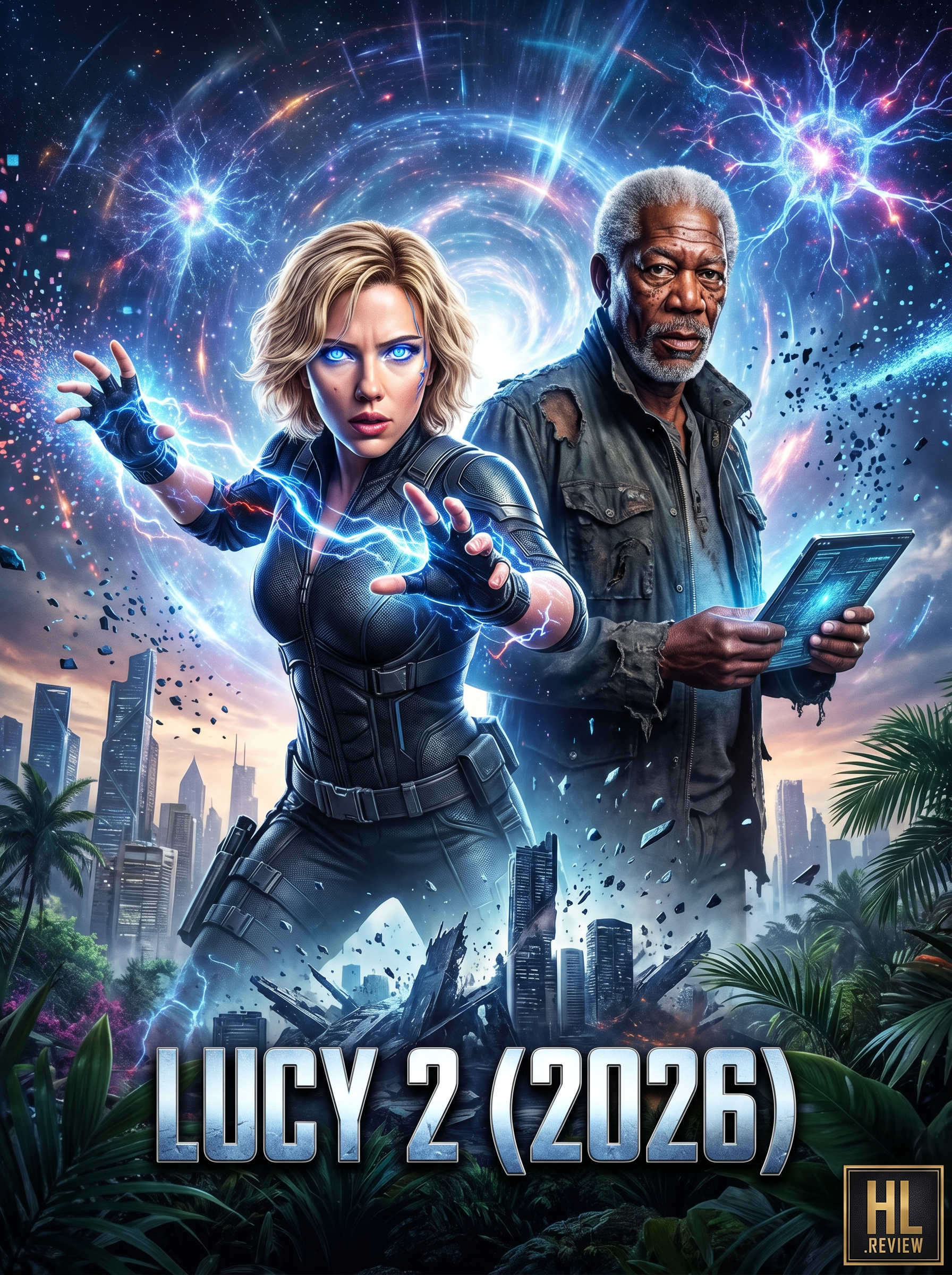 Starring the extraordinary Scarlett Johansson 🧠as Lucy, the transcendent superhuman who has evolved far beyond mortal limits, and the legendary Morgan Freeman 📖 as Professor Samuel Norman, the brilliant scientist and moral anchor now forced to confront the consequences of ultimate knowledge!