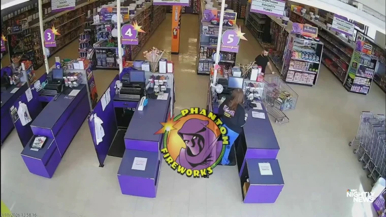 Video Phantom Fireworks shared with NBC News shows the man who identified himself as Ghazali, 41, walking into the store and registering his identification before shopping. About 15 minutes later, he walks to the register with a mostly full cart, fills out paperwork and begins checking out. Once all the items are scanned and on the counter, he turns the cart around and continues shopping.