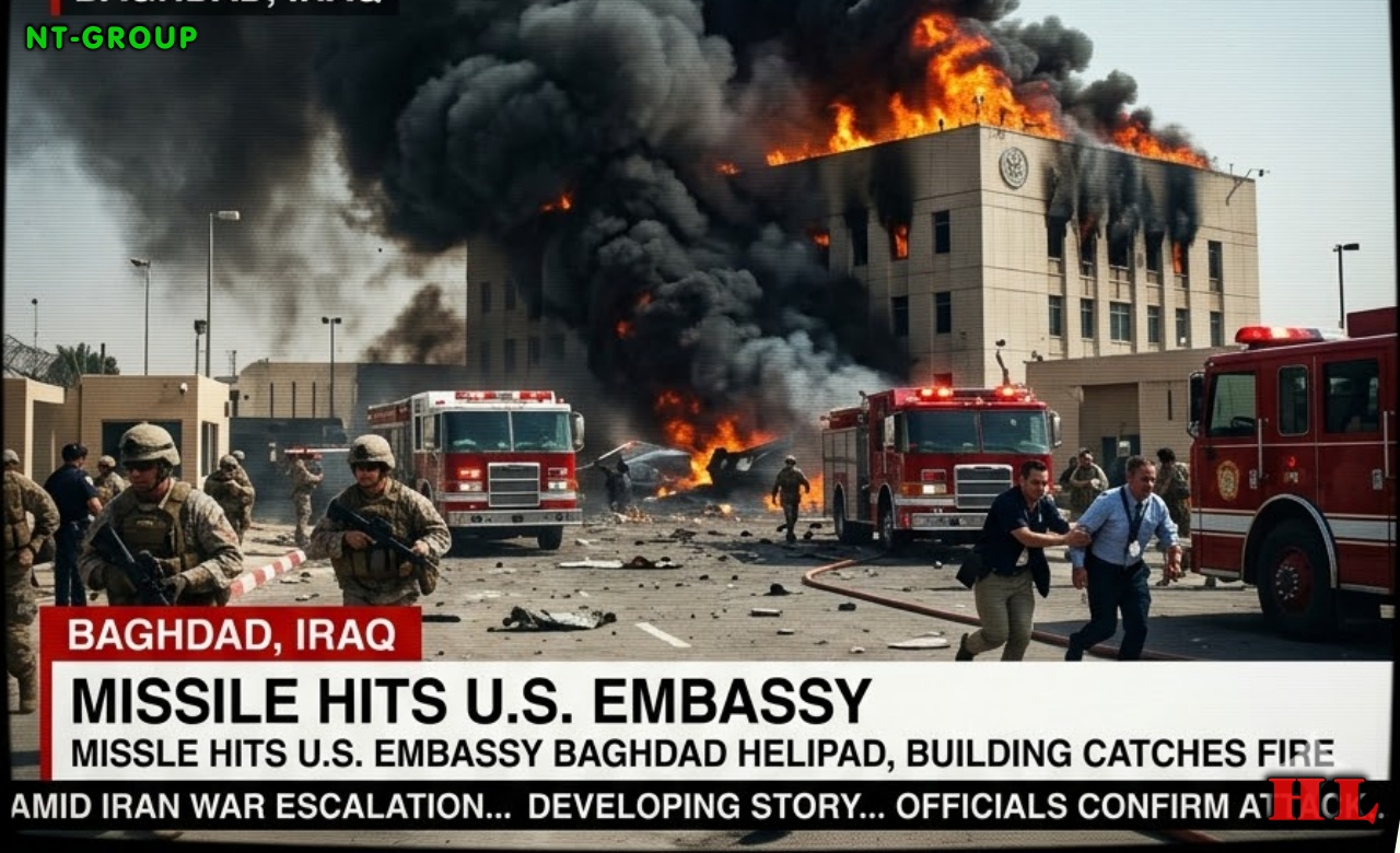 In a bold and highly symbolic attack, a missile slammed directly into the helipad of the heavily fortified U.S. Embᴀssy in Baghdad’s Green Zone, sparking a mᴀssive fire that engulfed parts of the main building as the Iran war continues to spiral out of control.