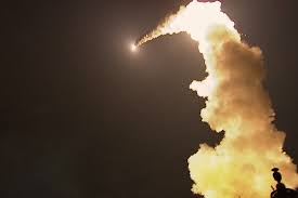 Missile trails streak across the sky as air defenses ignite in a desperate race against time.