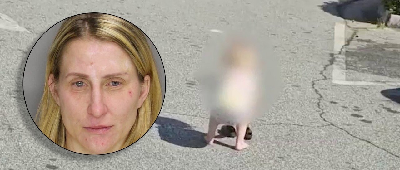 The 2-year-old (a crying toddler, screaming and barefoot) opened the car door and ran around in the busy parking lot, almost onto the main road.
