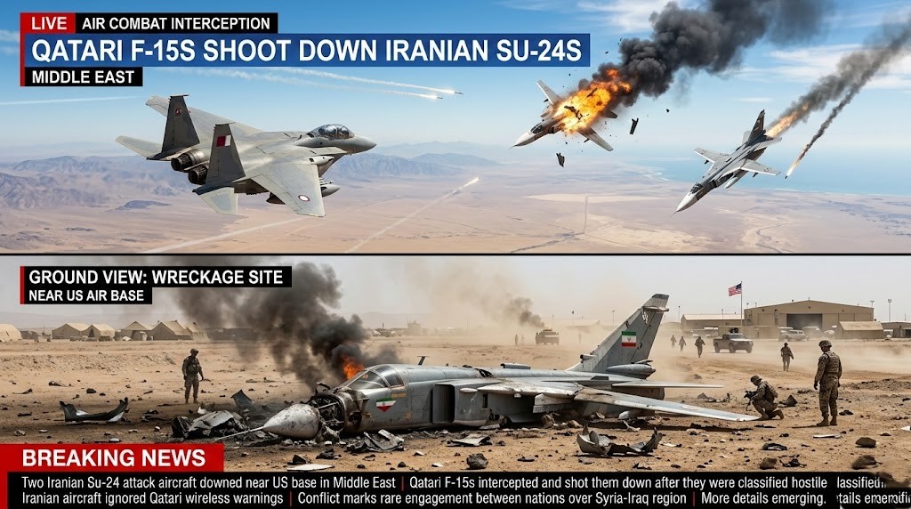 BREAKING (CNN): Qatari F-15s Shoot Down Two Iranian Su-24s Moments Before US Base Attack!