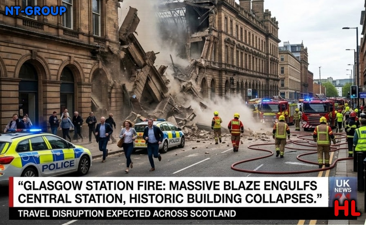 Glasgow was plunged into chaos this evening as a mᴀssive fire tore through Glasgow Central Station, engulfing parts of the concourse and causing the partial collapse of a…