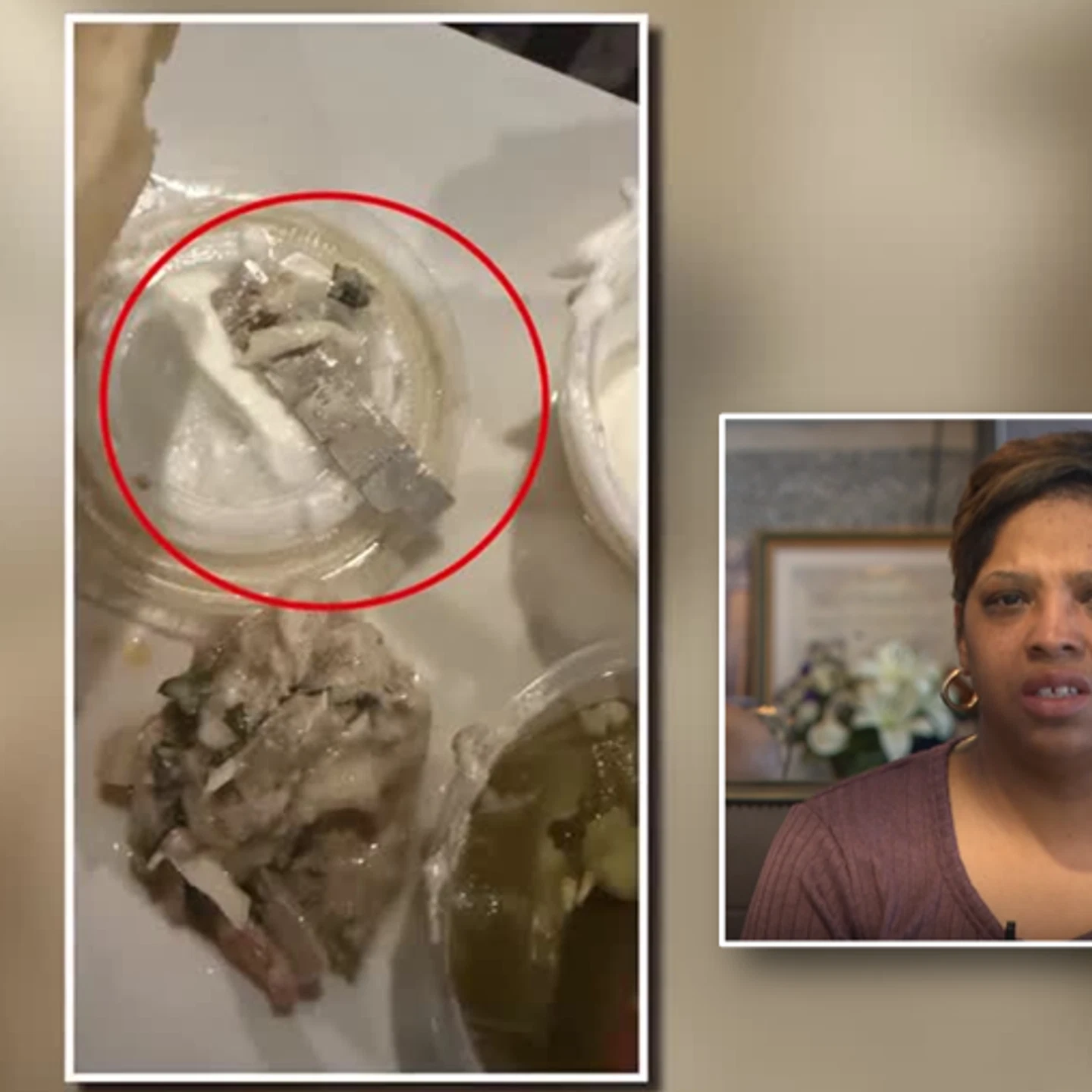 She said a 1.5-inch razor blade was mixed in with her lettuce, cheese and meat. According to Wideman-Reese, she felt something cut her lips and tongue before realizing what it was.