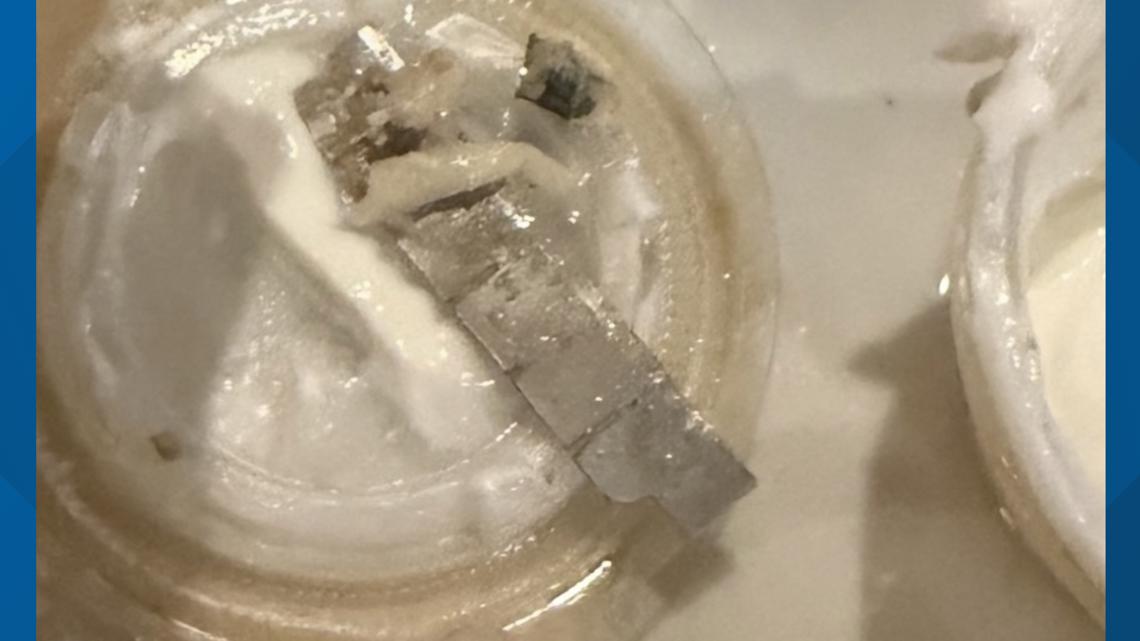 After spitting out her food, she said she saw the blade.