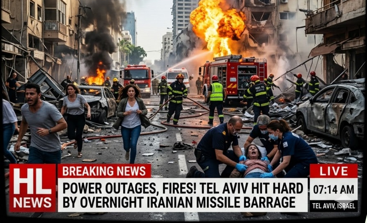 In a brutal overnight ᴀssault, Iran unleashed a mᴀssive missile barrage directly on Tel Aviv, plunging Israel’s vibrant coastal metropolis into darkness and chaos. Waves of ballistic missiles and explosive drones pierced the night sky, triggering widespread power outages across central districts while raging fires lit up the skyline from multiple impact sites.