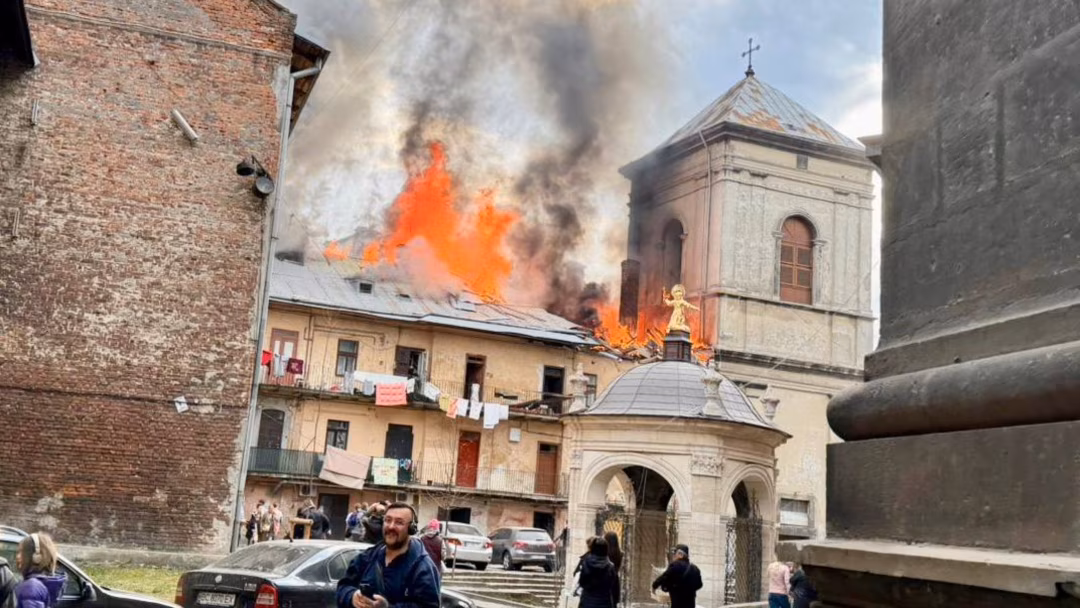 Lviv regional governor Maksym Kozytskyi said part of the UNESCO World Heritage Site around the 17th century St Andrew’s Church had been damaged.