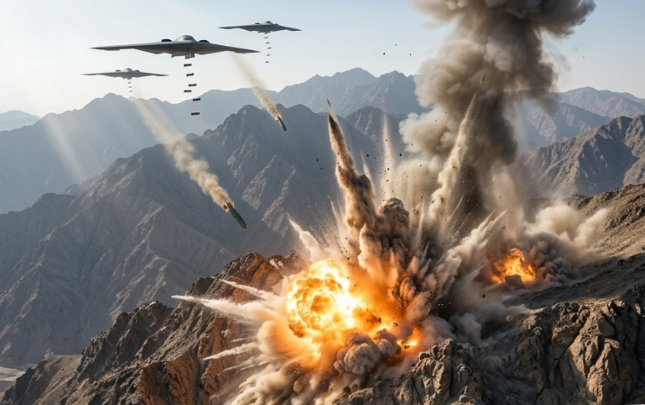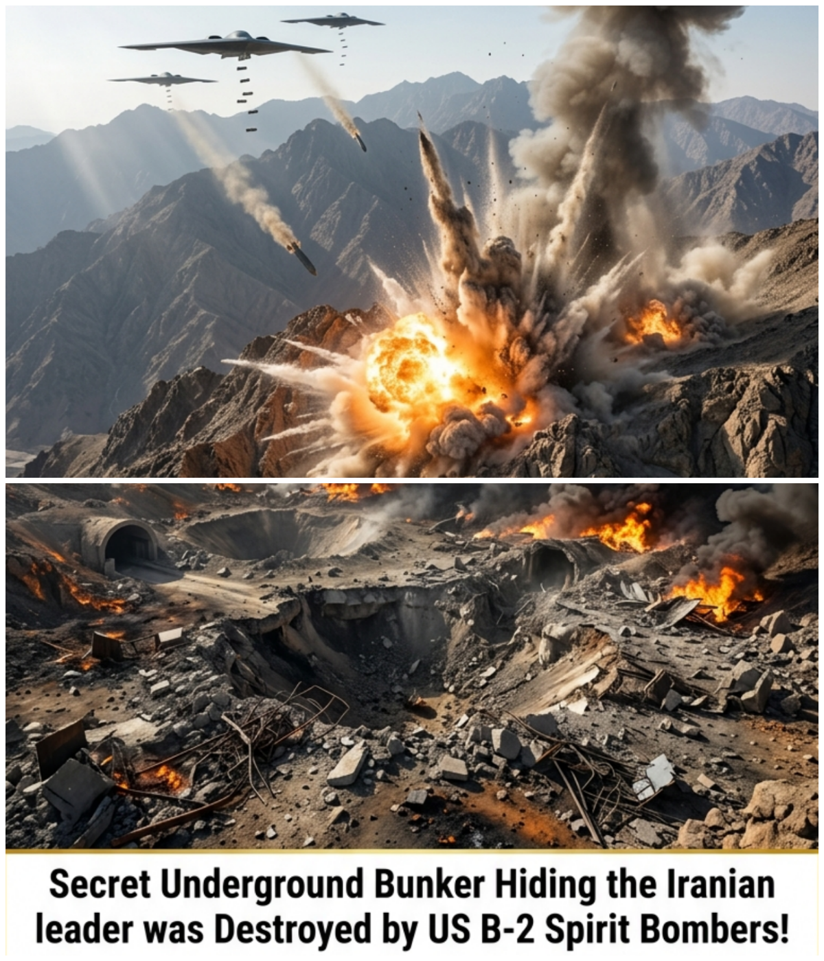 In a history-making precision strike, U.S. B-2 Spirit stealth bombers have completely obliterated a top-secret underground bunker complex where Iran’s supreme leader and top regime officials were believed to be hiding. The heavily fortified facility, buried deep beneath a mountain range near Tehran, was reduced to rubble in a devastating attack that has sent the Iranian regime into total chaos.