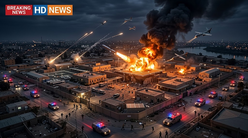Reports confirm that the U.S. Embᴀssy Baghdad was struck during a missile or drone attack, sending smoke rising from inside the heavily fortified diplomatic compound in Iraq’s capital. The incident has intensified concerns about the growing regional conflict and the safety of U.S. diplomatic facilities.
