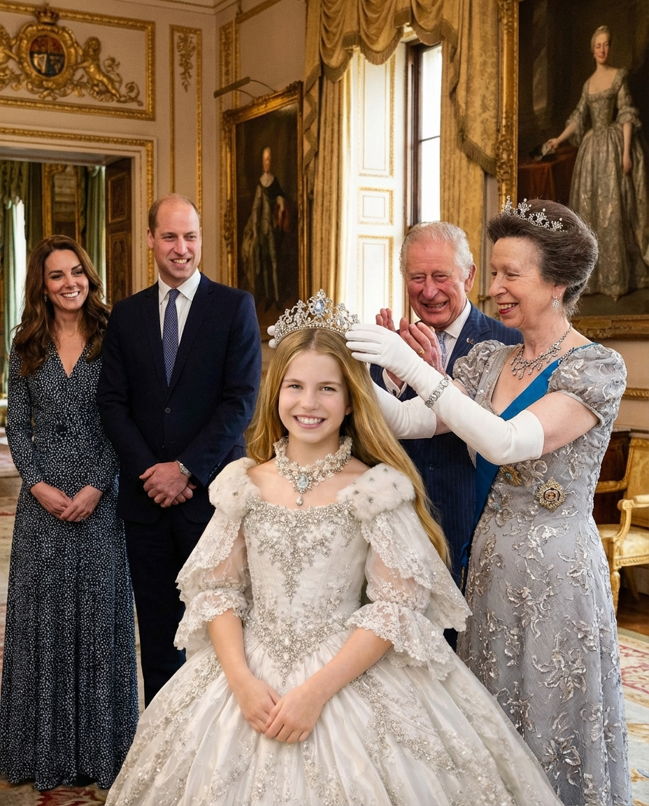 In a heartwarming ceremony at Buckingham Palace, Princess Anne, beloved daughter of Queen Elizabeth II, shared a magnificent moment, embodying the spirit of royal tradition and family love. With a radiant expression, she crowned her granddaughter, Princess Charlotte, marking a historic event that resonated to the applause of King Charles III and the boundless pride of Prince William and Princess Catherine. This event not only highlighted the special bond within the royal family but also marked a new chapter in the history of the monarchy.