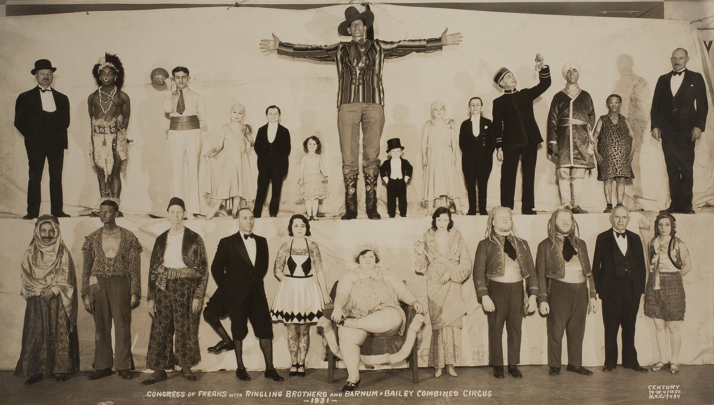 The pH๏τograph hits like a thunderclap frozen in sepia. There he stands in 1901, a living colossus on the Barnum & Bailey stage, dwarfing every performer around him like gods among ants. Broad-shouldered, perfectly proportioned, he is no fragile medical curiosity—he is a mountain carved into human form, his eyes carrying the quiet storm of centuries no calendar dares record. To the gasping crowds in Philadelphia and Boston, he was mere spectacle: a ticketed freak, a profitable oddity. To the man himself, he was the final heartbeat of a world deliberately erased.