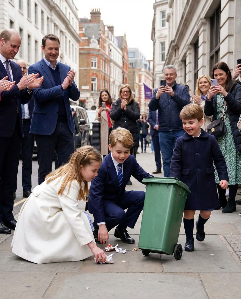 As Charlotte and George began picking up the litter, Louis ran to get a nearby trash can. Their enthusiasm spread; pᴀssersby stopped and applauded the trio’s efforts. This scene not only highlighted the importance of individual action but also showed how teamwork can amplify the impact of good deeds.