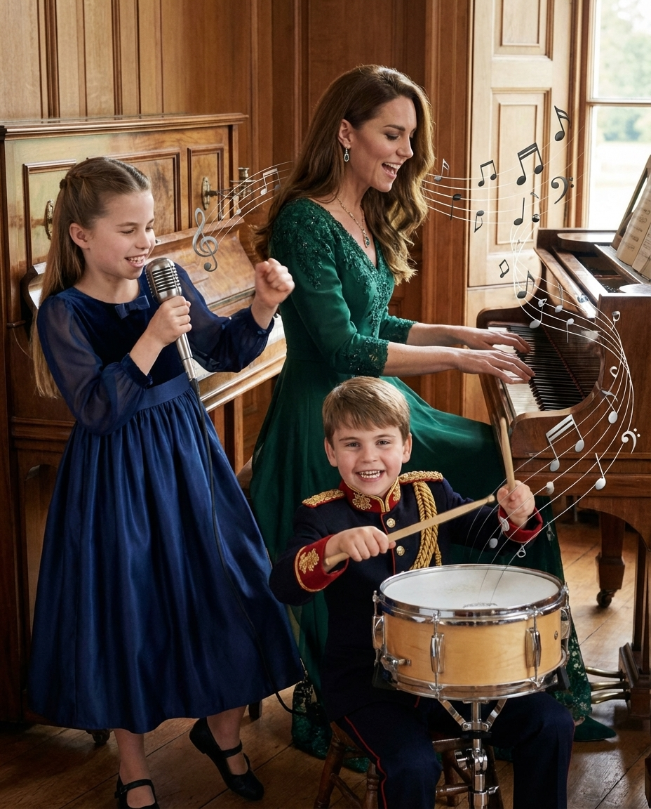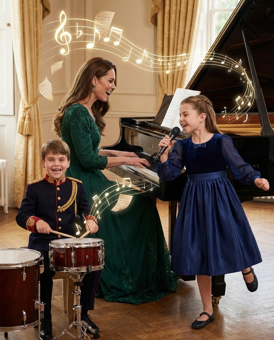 On an enchanting evening that few could have predicted, Princess Catherine and her children, Princess Charlotte and Prince Louis, unexpectedly took to the stage to perform a concert that astonished the attendees. This intimate gathering, held in a private setting, was not only a display of royal talent but also a warm reminder of the joy and creativity within the royal family. From Princess Catherine’s superb piano performance to Princess Charlotte’s melodious singing and Prince Louis’s energetic drumming, the concert was a magical experience that captivated all present.