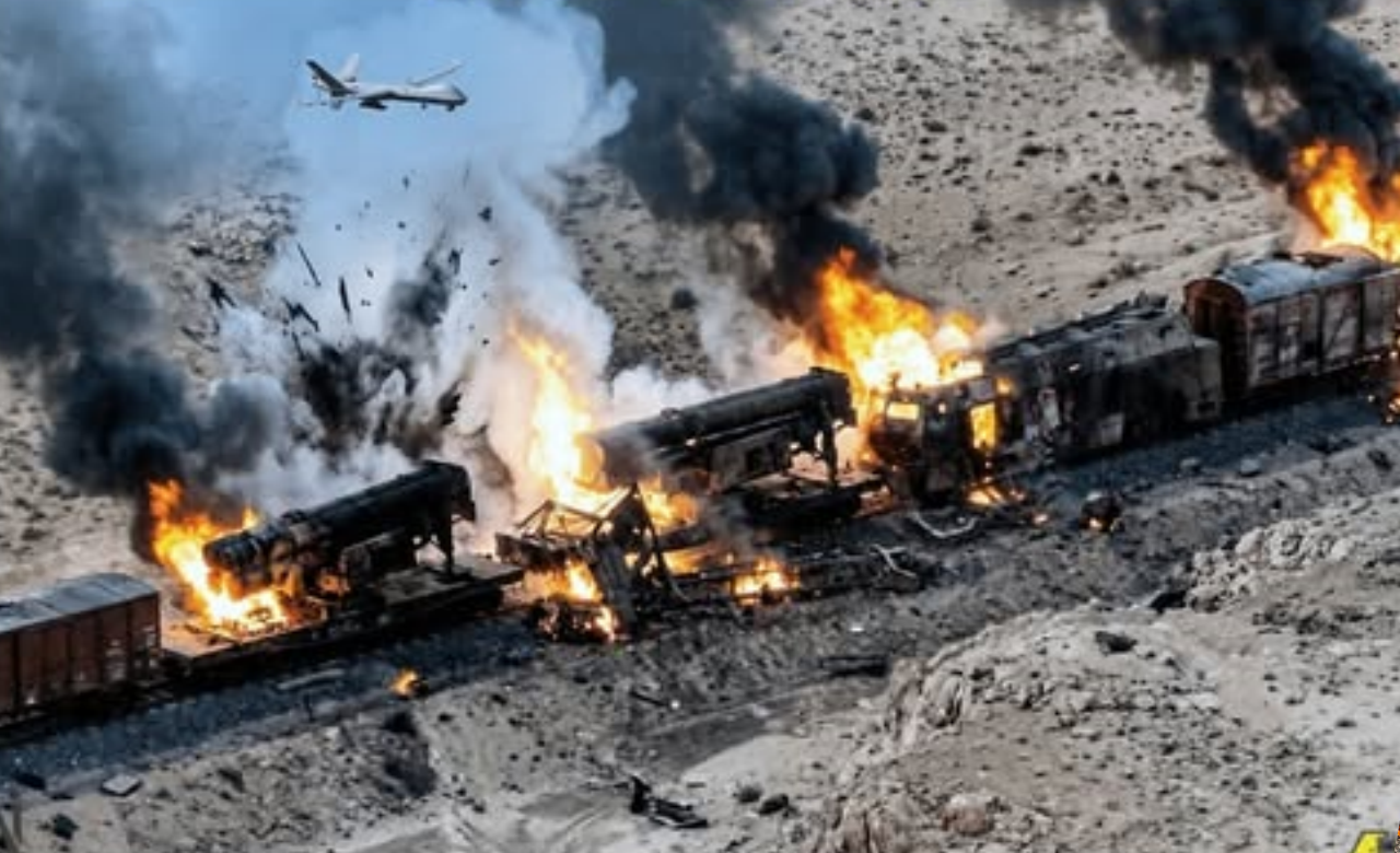 Central Iran – In a spectacular display of air superiority, U.S. and Israeli forces have destroyed a mᴀssive Iranian military train loaded with approximately 200 ballistic missiles in a devastating precision strike deep inside Iran.