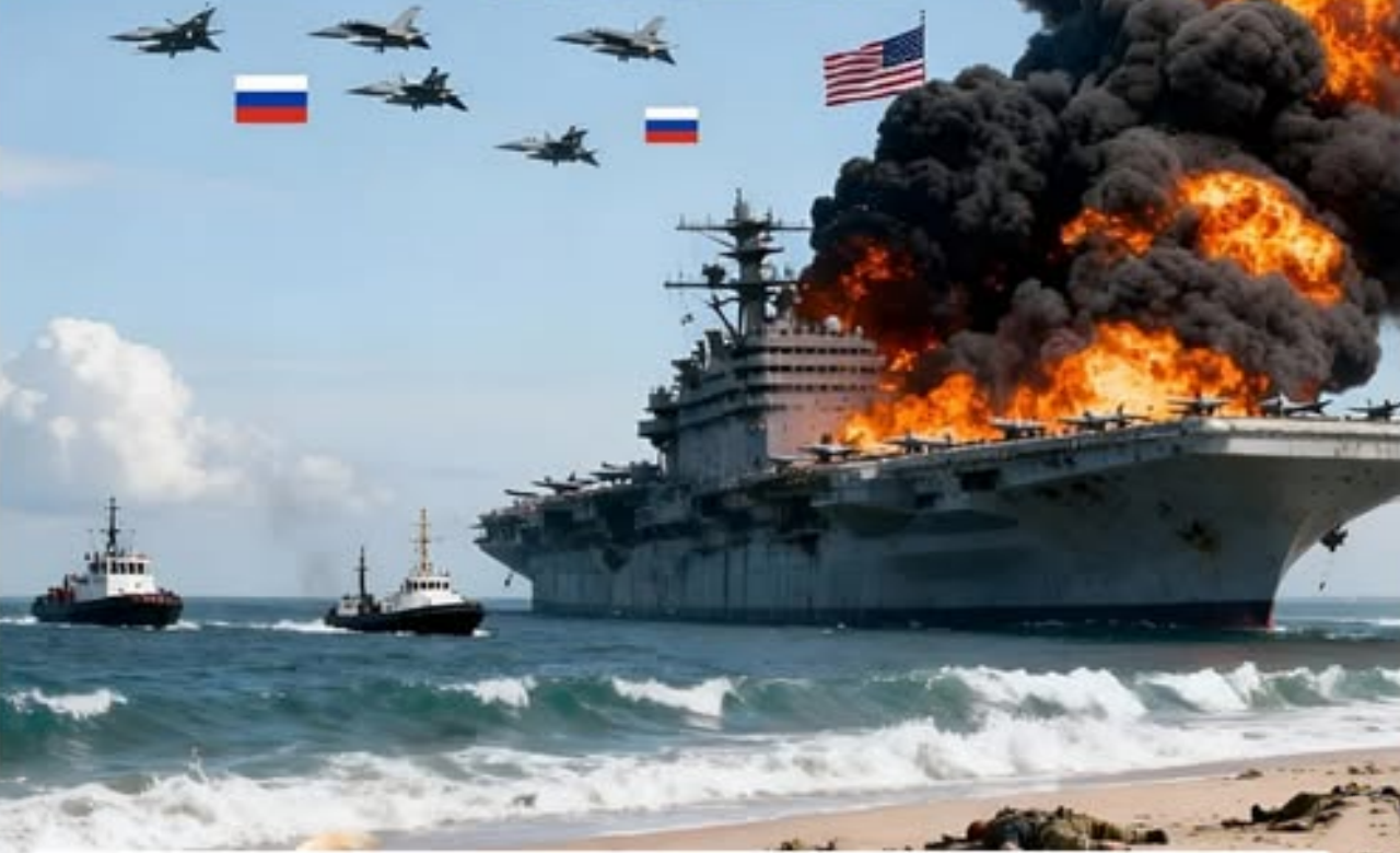 Black Sea – In a catastrophic blow that has stunned the world, a Russian advanced fighter jet has reportedly destroyed a U.S. Navy aircraft carrier in the Black Sea in what may be the most shocking naval loss for America since World War II.