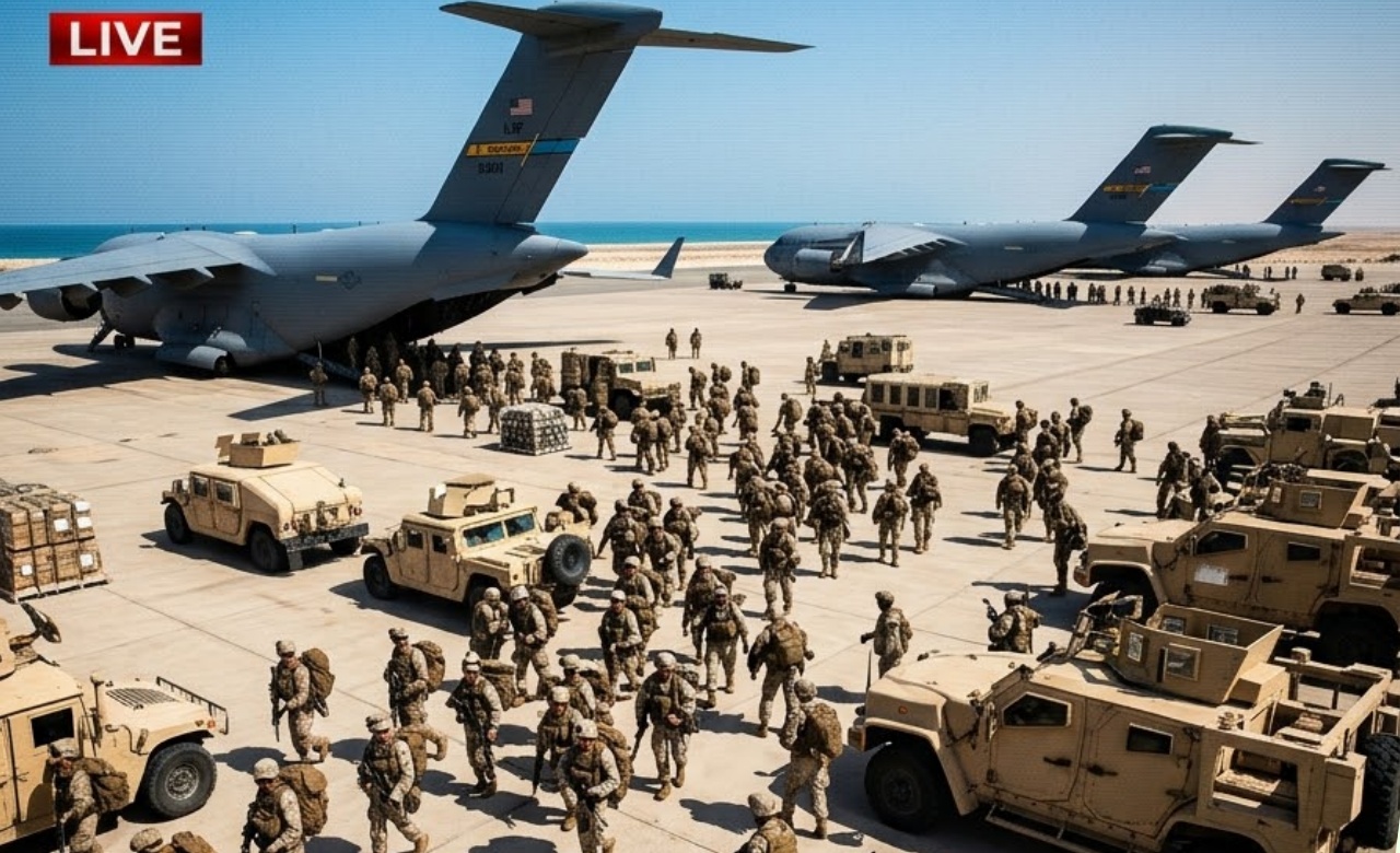 Dozens of giant C-17 Globemaster III transport aircraft have been landing continuously at forward bases in the Gulf, offloading thousands of Marines, armored vehicles, artillery, and heavy equipment. The rapid airlift operation is one of the largest of its kind in recent U.S. military history, signaling Washington’s determination to prevent Iran from closing the Strait of Hormuz, through which nearly 20% of the world’s oil flows daily.
