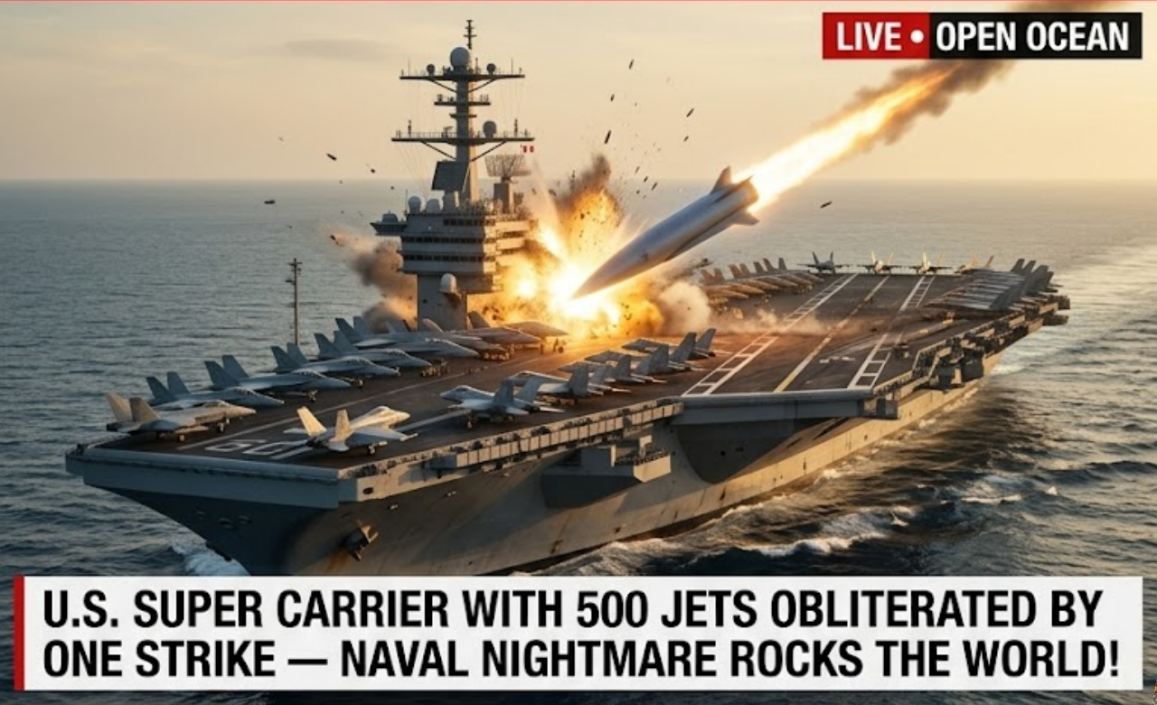 U.S. SUPER CARRIER WITH 500 JETS OBLITERATED BY ONE STRIKE — NAVAL NIGHTMARE ROCKS THE WORLD!lh