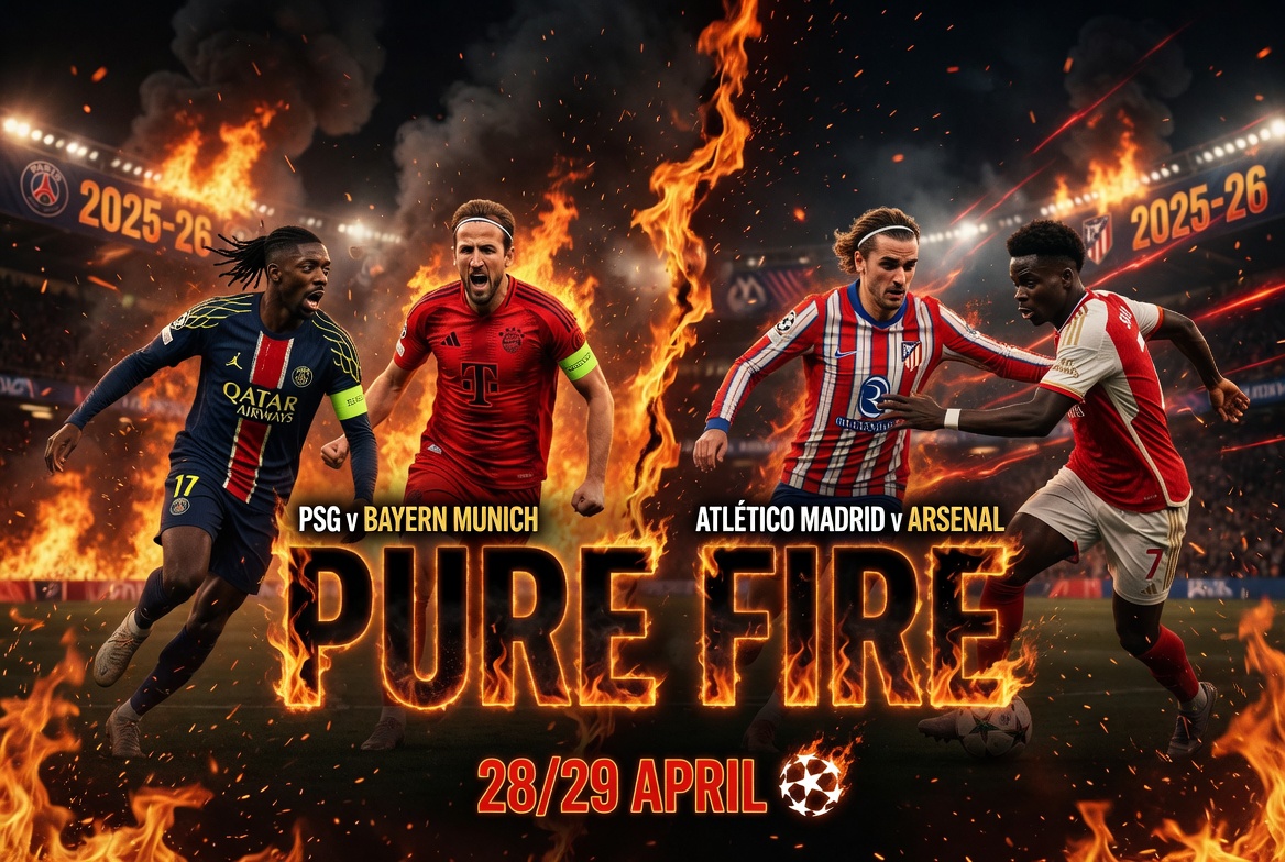 The 2025-26 Champions League has officially ignited one of the most anticipated nights in history! “Pure Fire” – true fire – as four giants from four leading European nations clash in two classic semi-final matches: PSG vs Bayern Munich and Atletico Madrid vs Arsenal. More than just two matches, this is a battle between contrasting football philosophies, between ambition and tradition, between speed and resilience. Football fans worldwide are holding their breath, while Vietnamese fans are ready to stay up all night to witness history being rewritten!
