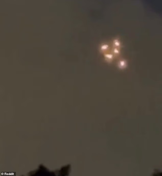 One user on X claimed the lights were ‘non-human intelligent orbs,’ while another user on Reddit shared: ‘This is exactly what it looks like when parachuters have flares attached as they’re falling.’