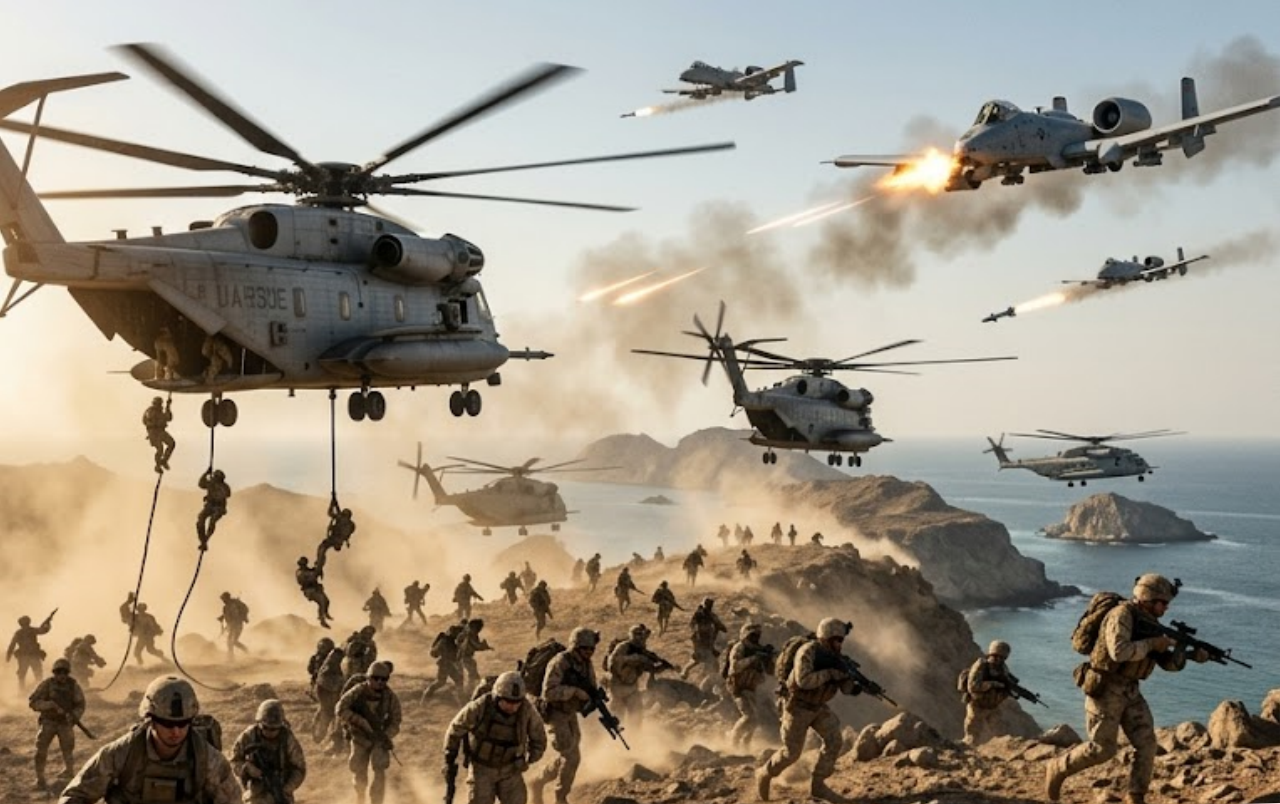 In a powerful show of force that signals the final phase of operations in the Strait of Hormuz, the US military has executed a mᴀssive air ᴀssault, deploying over 5,000 combat-ready troops via heavy-lift CH-53K King Stallion helicopters directly into strategic positions along the Iranian coastline.