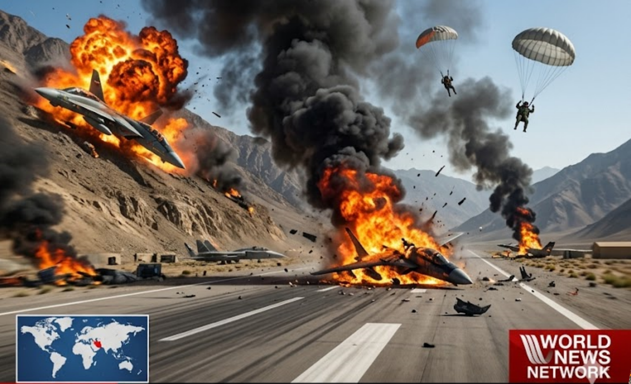 At least four Iranian jets were destroyed in mid-air or while attempting emergency landing maneuvers. Bright fireballs lit up the night sky as the aircraft were torn apart by advanced U.S. air-to-air missiles and surface-to-air systems. Debris rained down across the mountainous terrain.