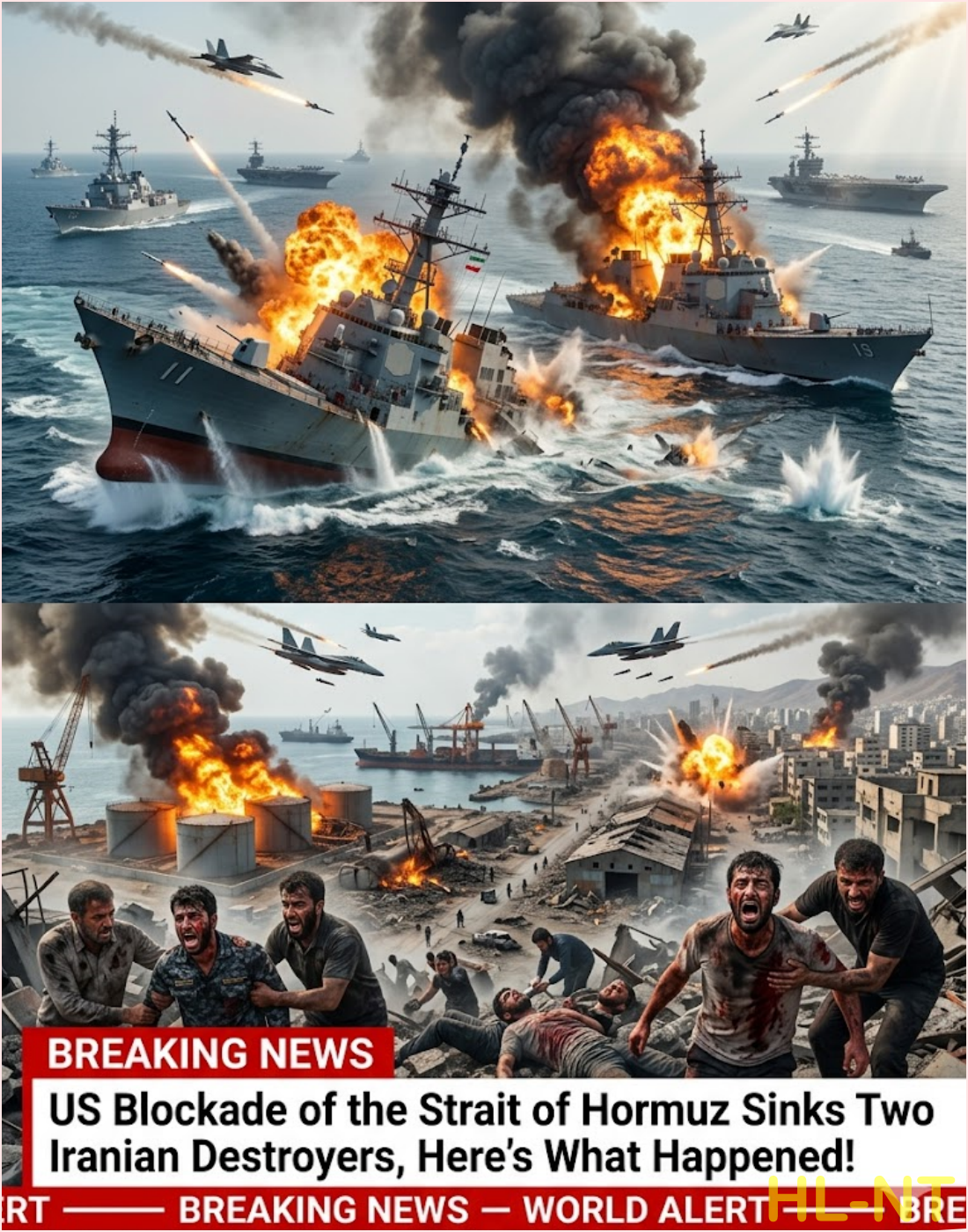 In a dramatic show of American naval dominance, U.S. forces enforcing a full blockade of the Strait of Hormuz have sunk two Iranian Navy destroyers in a swift and decisive engagement. The clash erupted when the Iranian warships attempted to challenge the blockade, only to be met with overwhelming firepower from American surface and air ᴀssets.