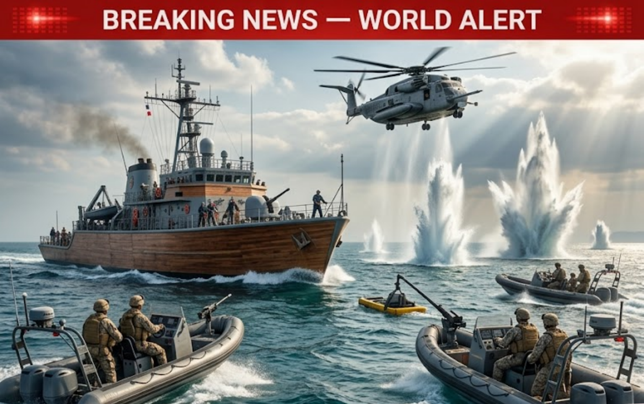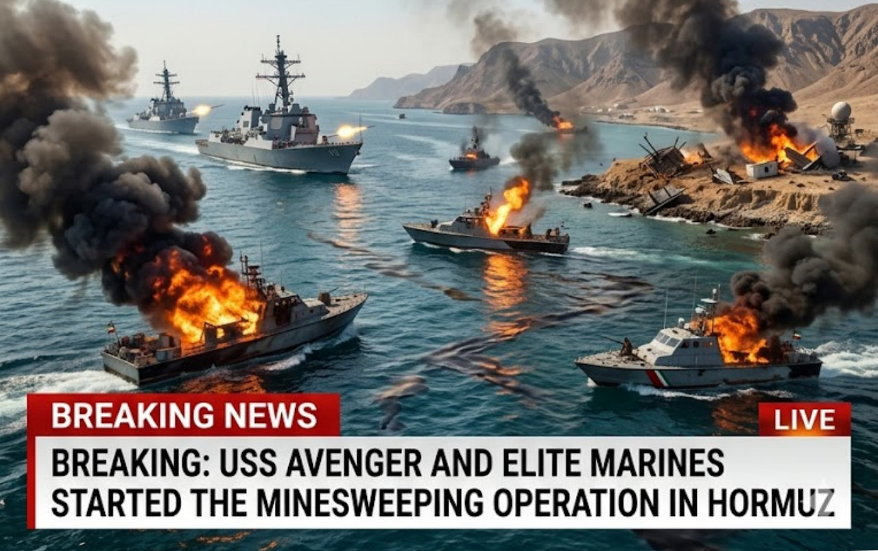 In a decisive show of American naval power and resolve, the U.S. Navy’s USS Avenger, supported by elite Marine Corps special operations teams, has begun a large-scale minesweeping operation in the critical waters of the Strait of Hormuz. The mission aims to neutralize Iranian-laid minefields that threaten commercial shipping and U.S. naval operations in the vital energy chokepoint.